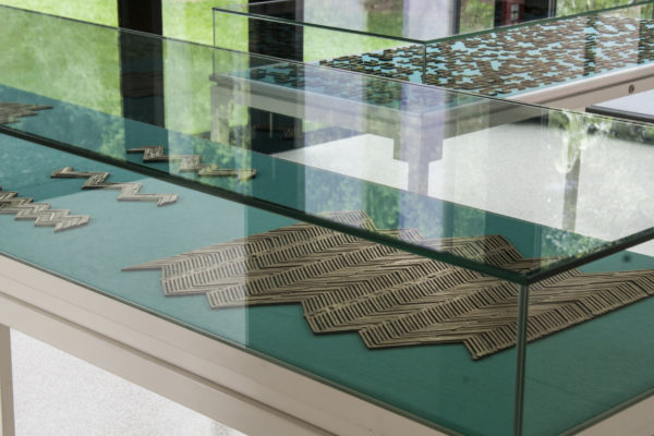 ›Tracing a Seeping Terrain‹ wurde speziell für den Heidelberger Kunstverein konzipiert. Die multimediale Installation erstreckt sich über die erste und zweite Etage und führt die Besucher:innen durch einen Parcours aus miteinander vernetzten Skulpturen. Der Höhepunkt dieser Installation ist die Projektion einer virtuellen Landschaft, die auf das Geschehen im Raum reagiert. Die Entscheidungen der Besucher:innen werden den (ökologischen) Zustand dieser Landschaft für immer verändern. Gaming wird hier als Möglichkeit präsentiert, sich mit dem Klimawandel jenseits von Ohnmachtsgefühlen auseinanderzusetzen.